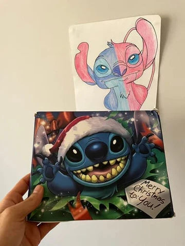 "My girlfriend has been a big stitch fan since she was a kid as you can see from the drawing hahah. She loved this and cracked it open as she couldn't wait. The charms looked great and she couldn't be happier. Happy girl happy world."